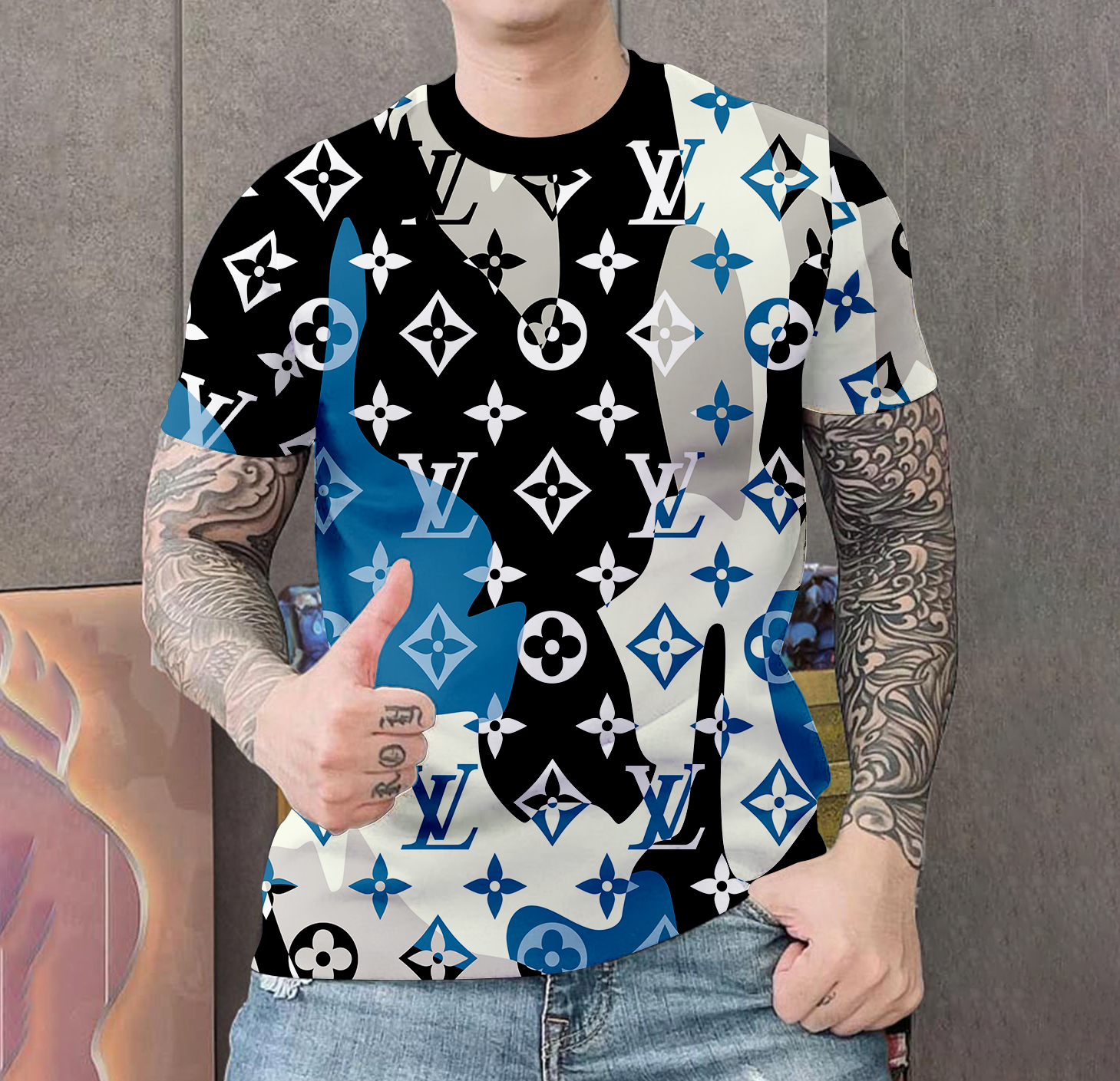 Quarter-turned body to eliminate the center crease. The design is printed with new age printing technology, direct to garment. It is printed with a water – soluble and eco – friendly ink.